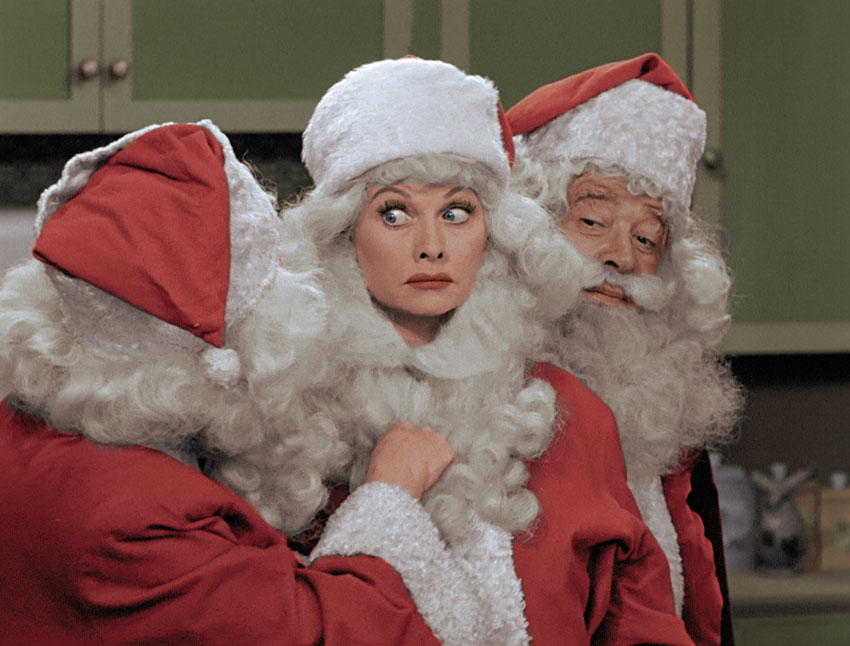 How many Santas are too many? Find out in the classic I LOVE LUCY CHRISTMAS EPISODE. Photo ©2013 CBS Broadcasting, Inc.