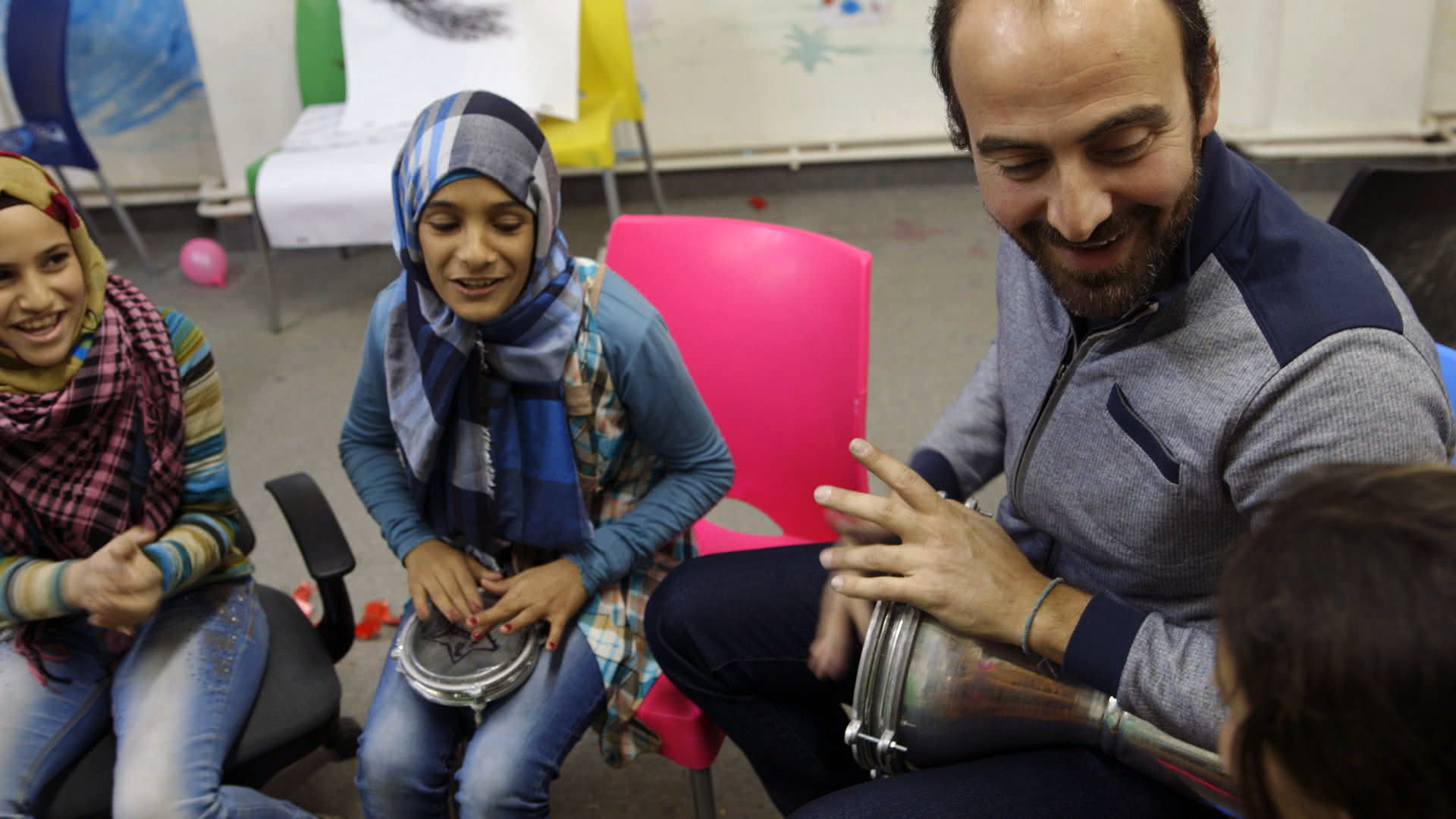 Syrian clarinet player and composer Kinan Azmeh visited Jordan to teach music to Syrian children in a refugee camp. Photo courtesy HBO.
