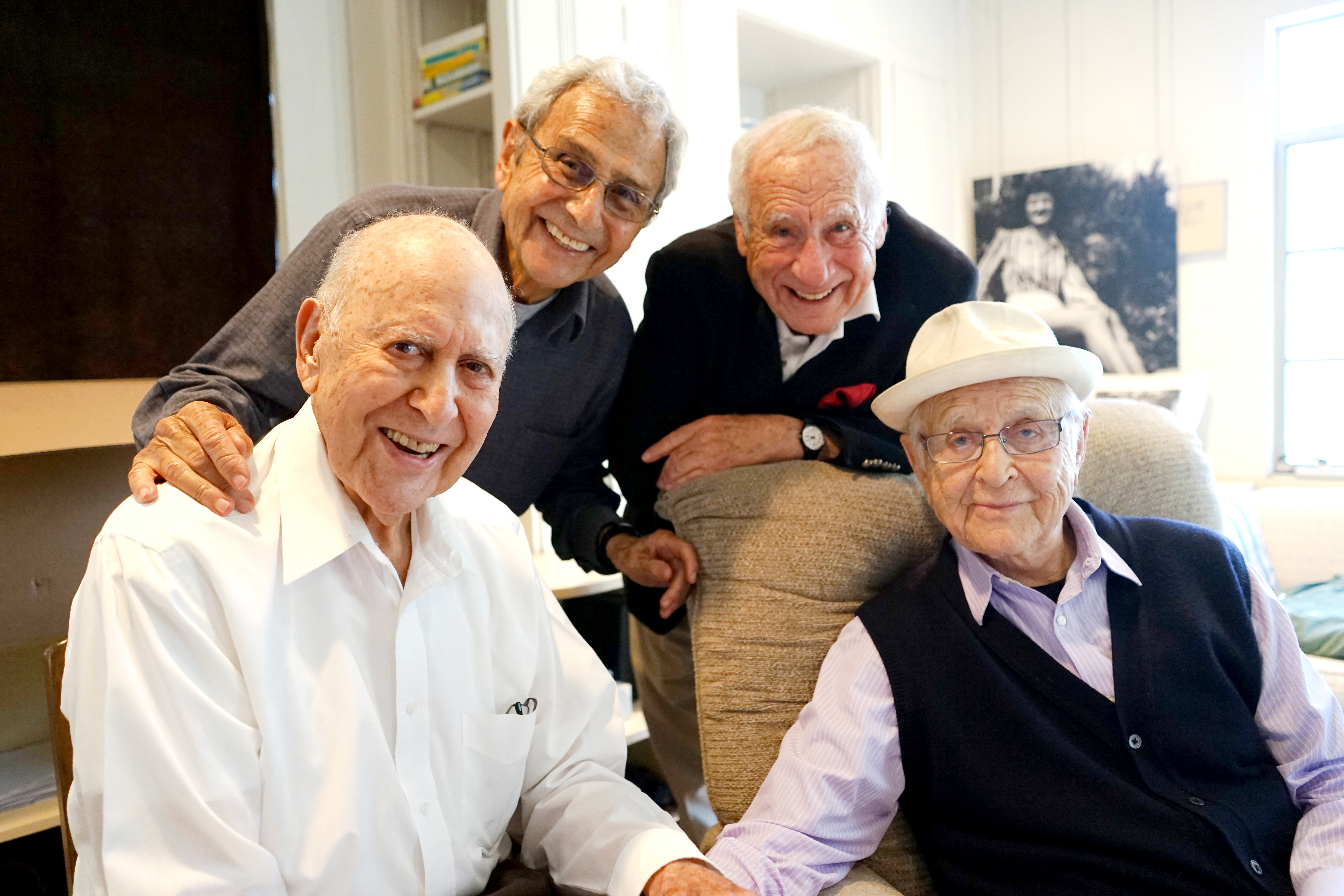 Three of these talented guys are living well into their nineties. From left: Carl Reiner, George Shapiro, Mel Brooks and Norman Lear. Photo courtesy HBO.