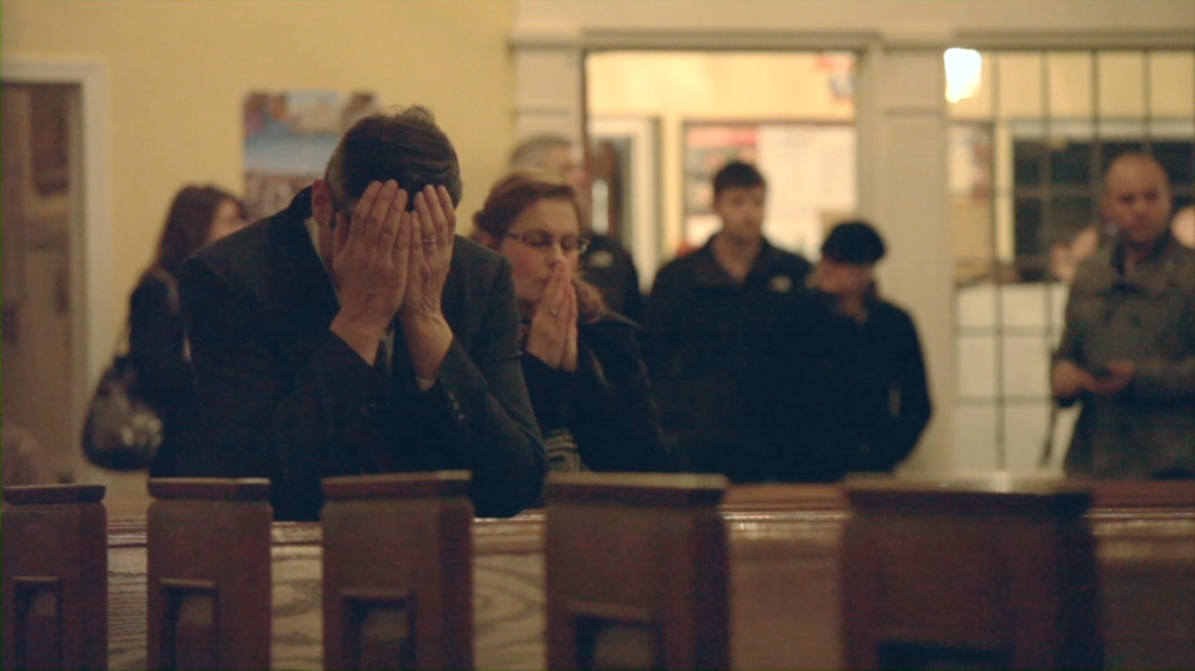 The film replays the traumatic timeline of that chilling day, from the frantic 911 calls and EMT and police reports to the gathering at the local firehouse, where anxious parents awaited news of their children’s well-being.