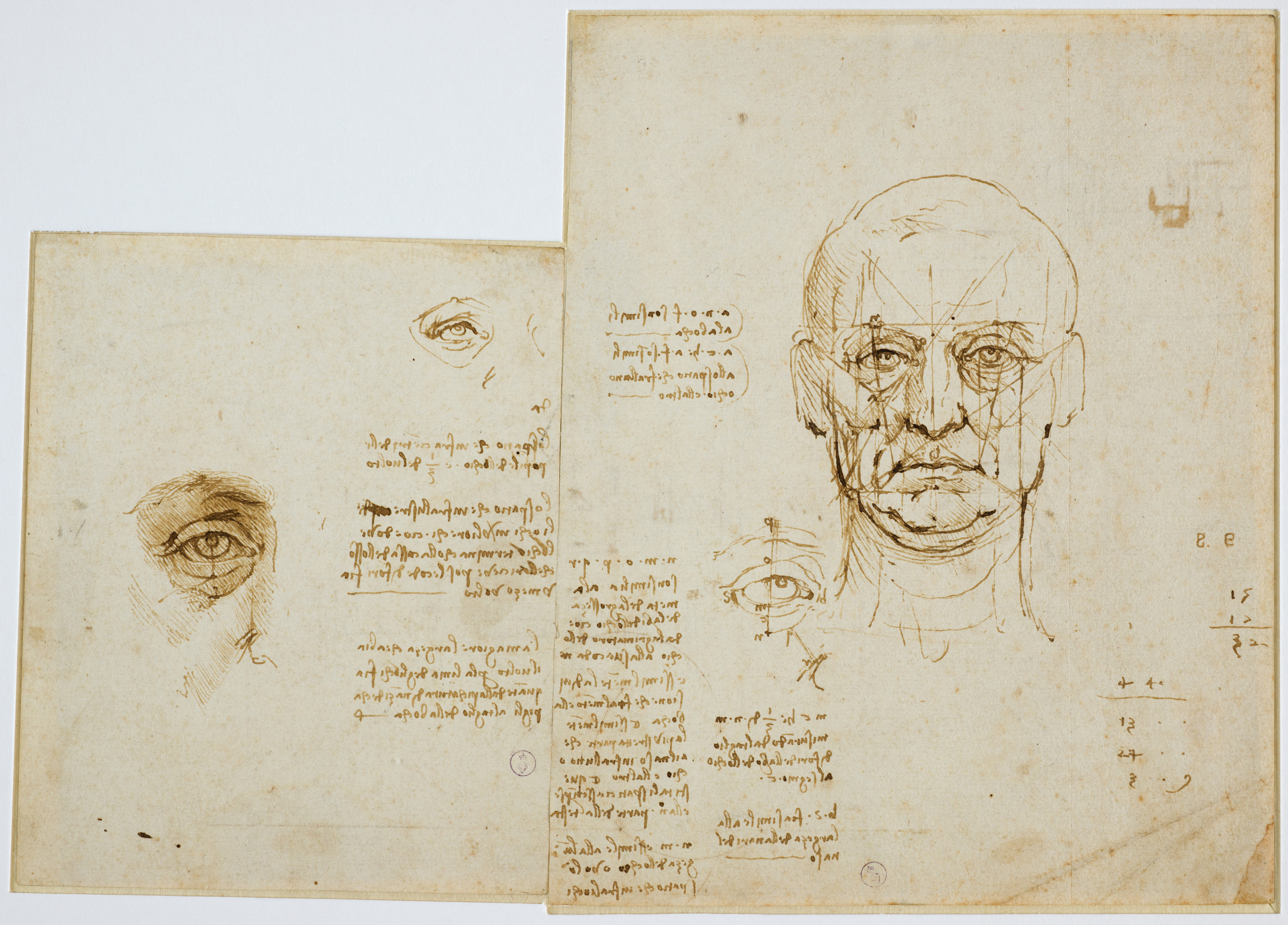 Studies of proportions of face and eye (with notes) by Leonardo da Vinci, circa 1489. By Permission of MiC-Musei Reali. Biblioteca Reale. Photo: Ernani Orcorte.